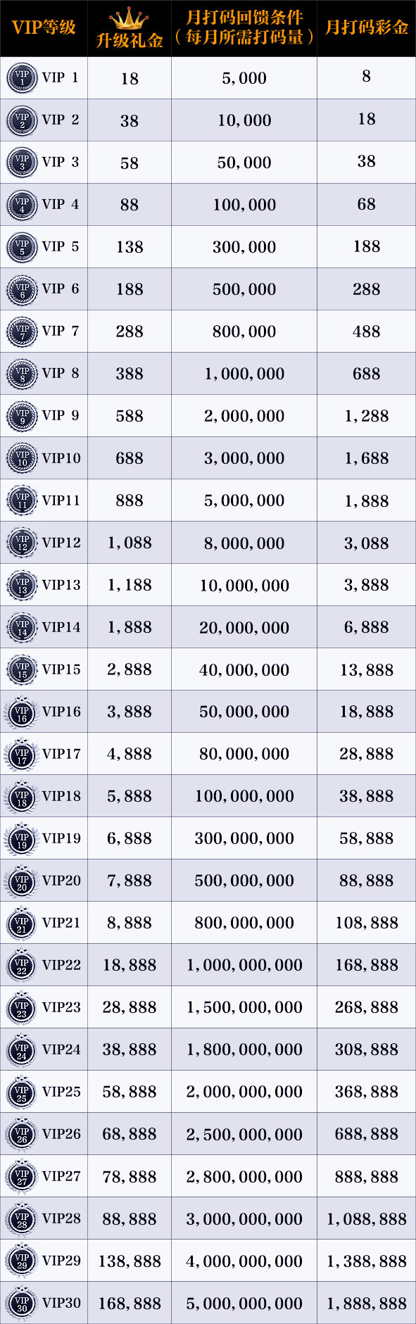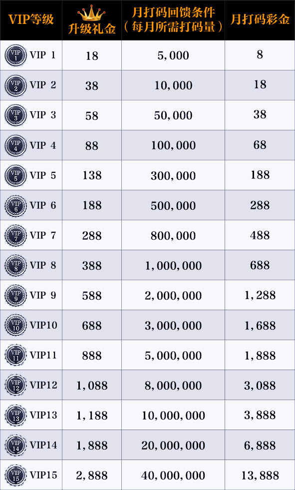 升級所需累計流水:
